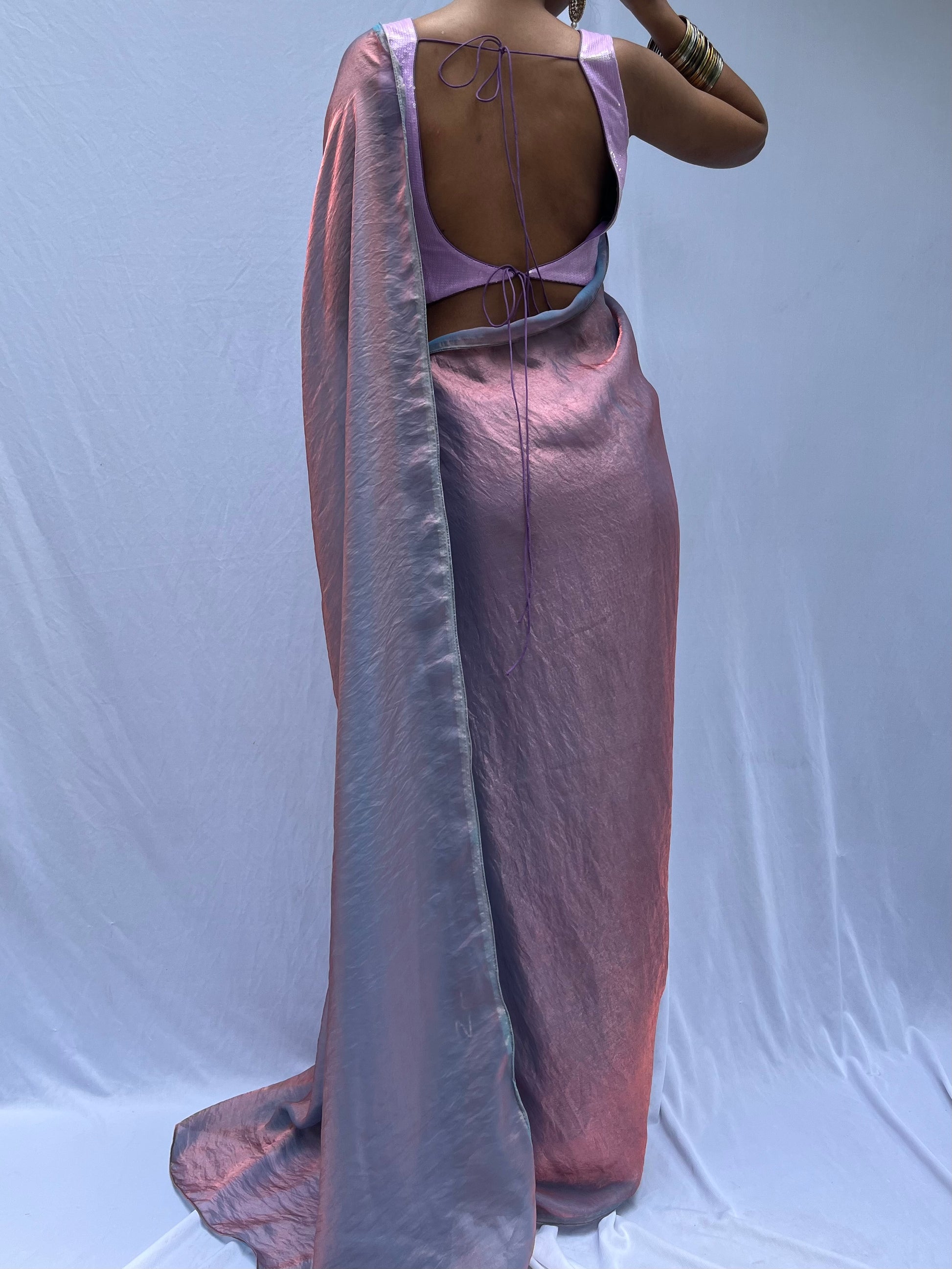 Sequin sleeveless blouse with tie back detail for the Sula Saree Drape- Pink Blue