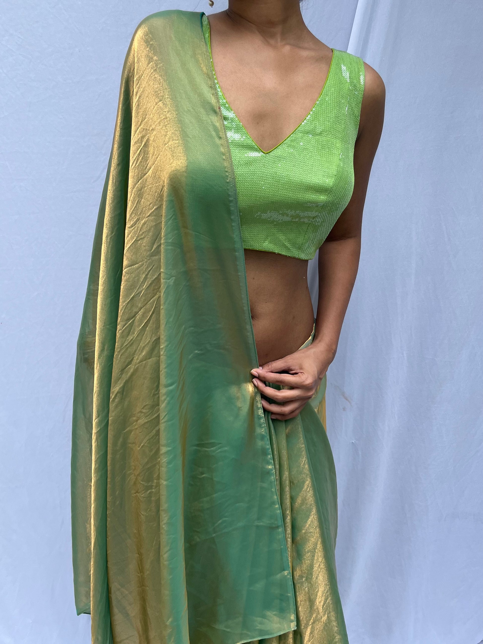 5.5 meters of dual tone silk organza fabric making for the perfect saree drape.